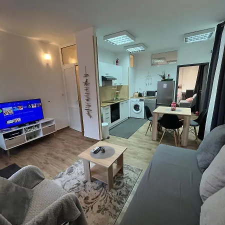 Quest'alloggio comprende un bar sulla terrazza e un salottino con finestre insonorizzate, nonché servizi moderni come un televisore e una TV a schermo piatto con canali satellitari. Rilevatori di fumo fanno parte dei servizi di sicurezza in camera. Quest'appartamento vanta 1 camera da letto con cuscini morbidi o duri antiallergici. Dispone di 1 bagno che è provvisto di una cabina doccia e un bagno alla francese. Inoltre, il bagno è dotato di asciugacapelli e teli da bagno.